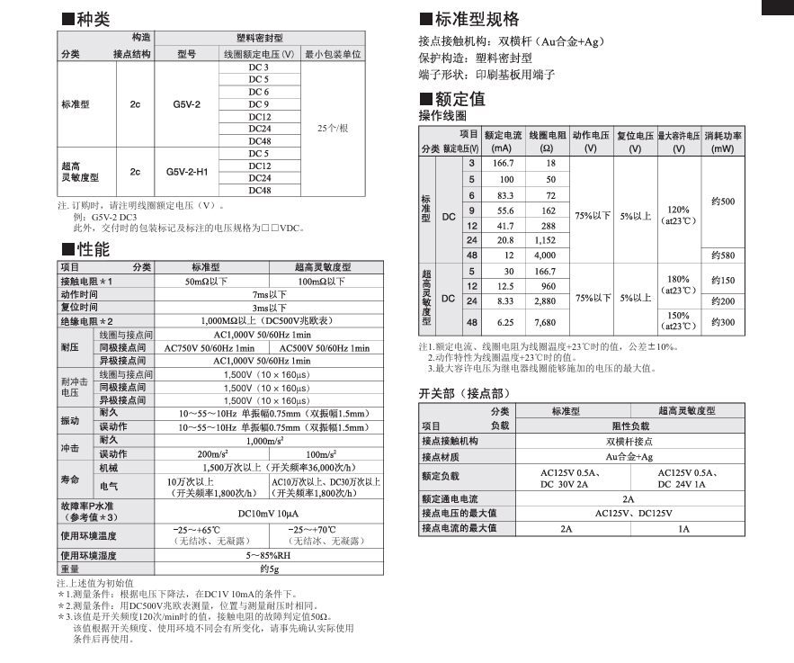 耐高电压、线圈接点间AC1,000V,同极接点间AC750V。