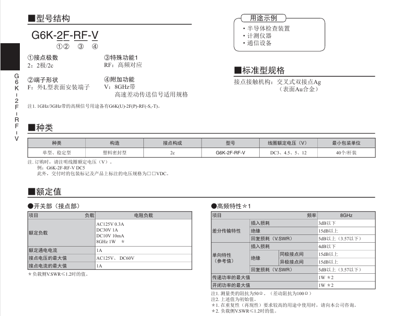 G6K-2F-RF-V 表面安装高频继电器